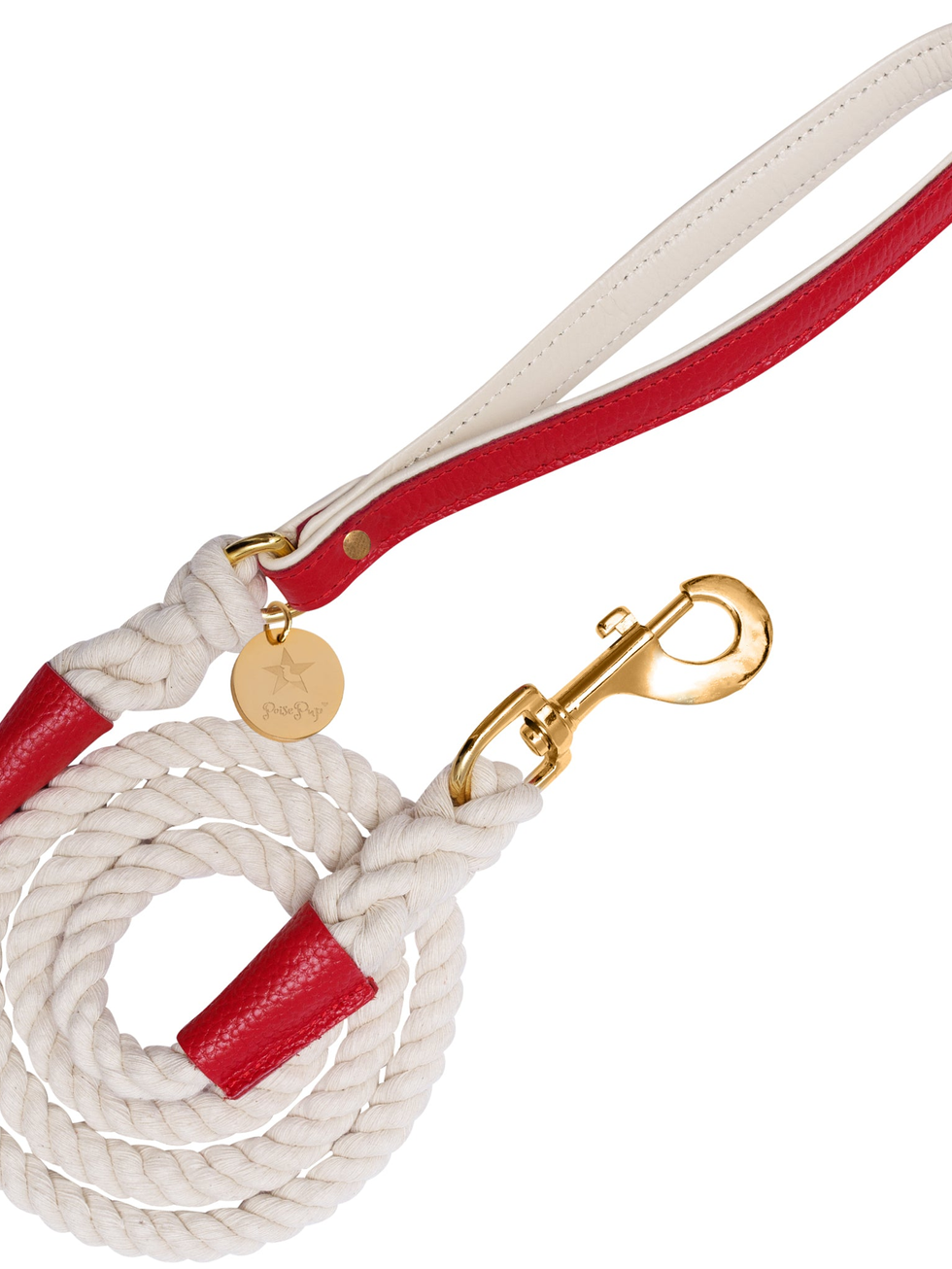 Walk in style with the best looking ROPE LEASH! HANDMADE IN EUROPE PoisePup only sources from elite manufacturers around the world. Our products are carefully handmade in Europe using materials with the highest quality standards.DURABLE and STRONG - Our 100% natural cotton rope Leashes with leather handle and trim are perfectly constructed and durable for any outdoor activities with your dog, such as walking, hiking and running. Our strong premium grade hardware finish allows your pet to be properly secured.BEAUTIFUL and STYLISH DESIGN Each leash has been beautifully designed with meticulous attention to detail and crafting, adding a sophisticated look, perfect for men or women.MADE FOR COMFORT With the high-quality full grain padded leather handle, our leashes are the softest and most comfortable on your wrist and hand.MATCHING and AVAILABLE To make this leash really pop, we recommend the matching PoisePup collar and waste bag holder. Made from the same materials and finish, they look gorgeous independently or as a .Care InstructionsRope: Wipe clean with a damp cloth using a lather of any mild soap with lukewarm water and dry with a clean, soft cloth.Leather: Use leather conditioner or cream every 6-12 months. Sizing5 FT (150cm) LEASH FOR EASY CONTROL Our lightweight designer rope Leash is 1/2 in? (1.3cm) thick and 5 feet (150cm) in length to best keep your dog close to your side and training to heel small, medium and large breeds. .