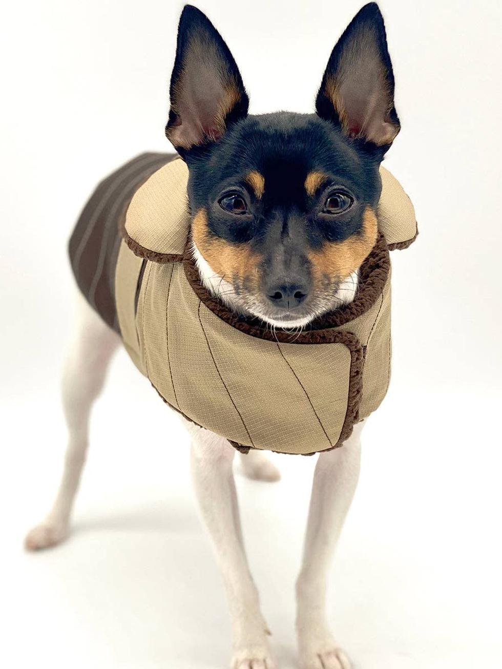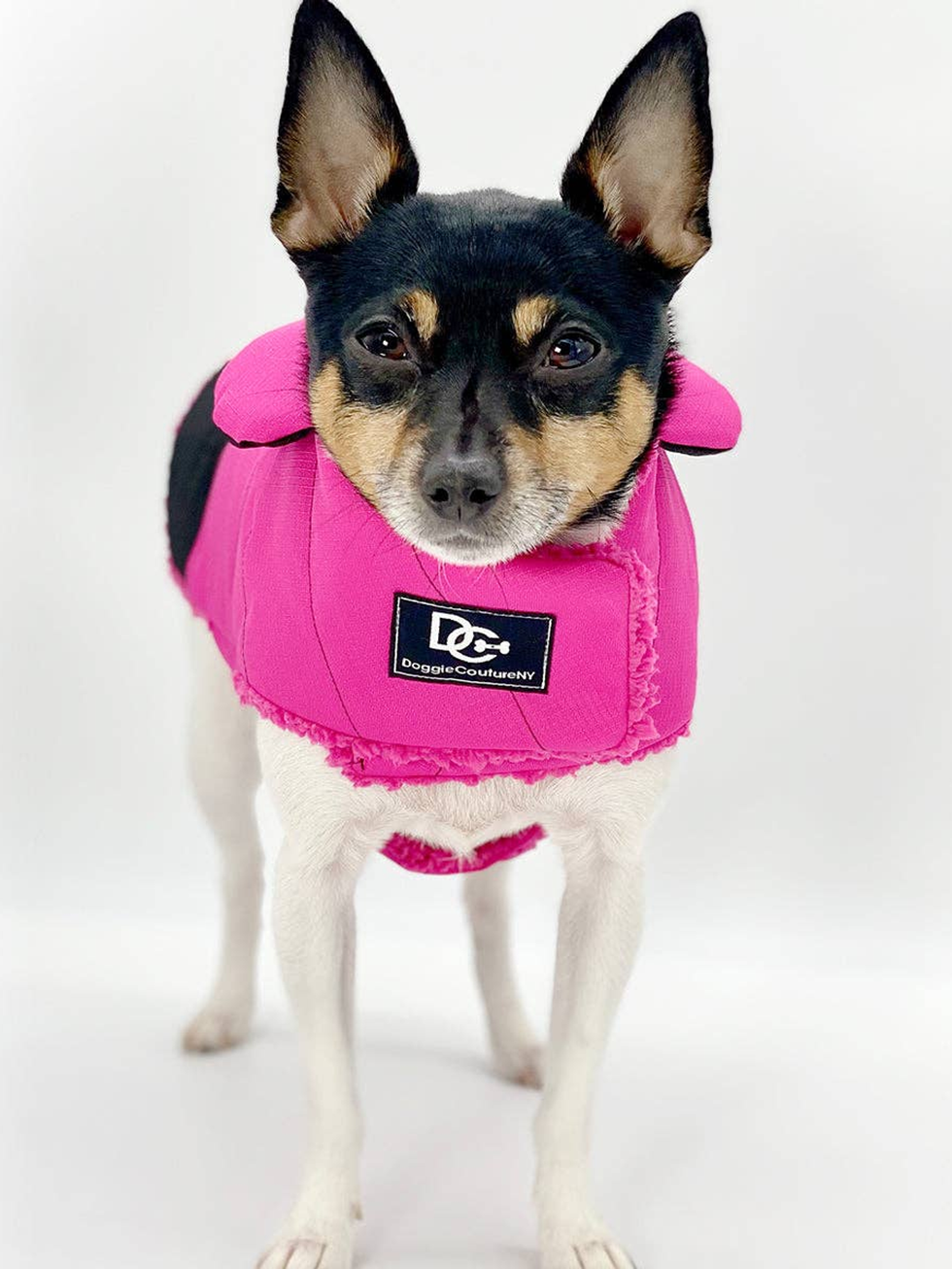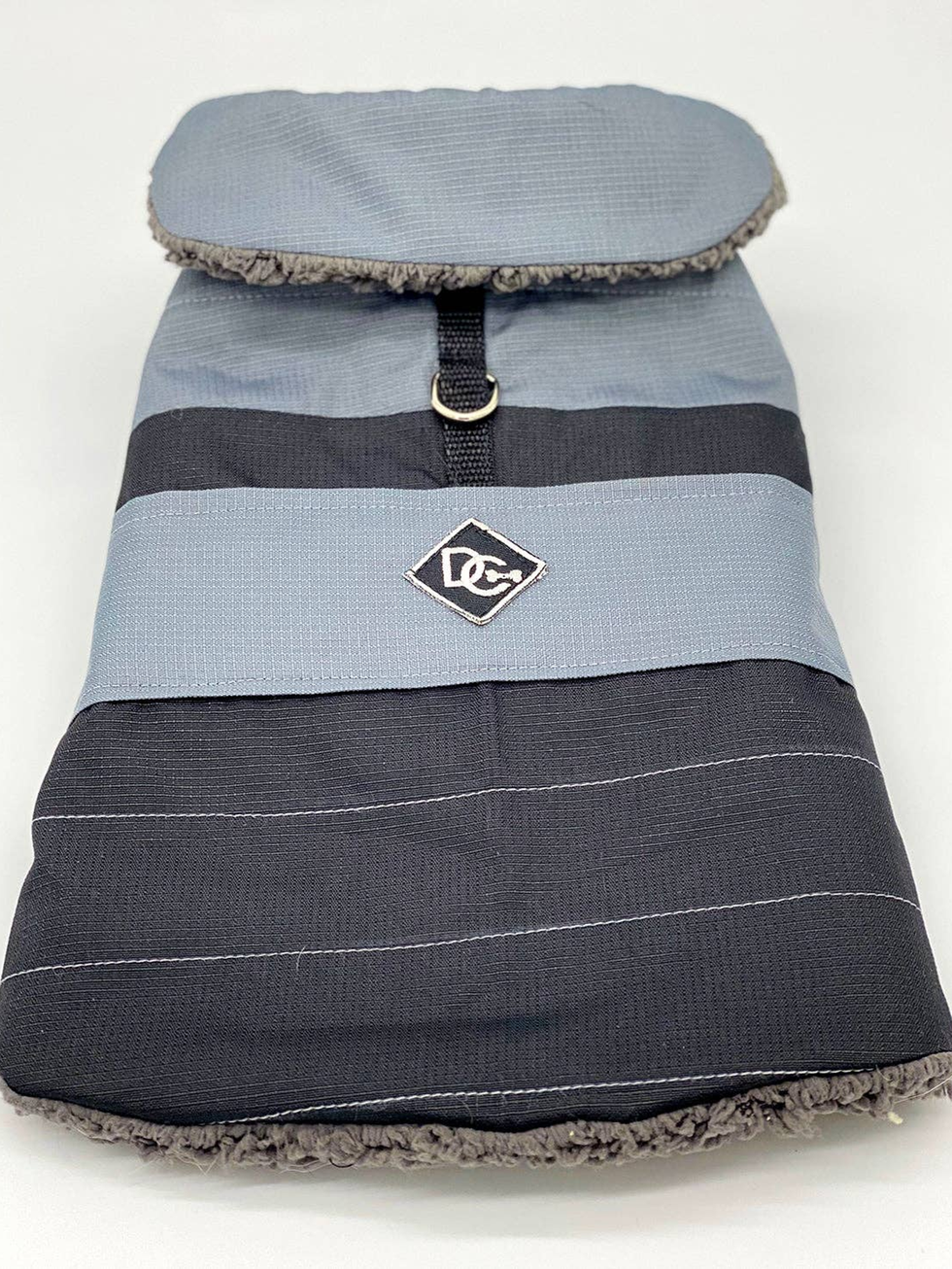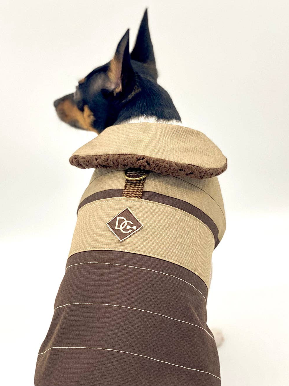 Your pet will stay dry and warm in our water resistant, fleece-lined coat. Made with Ottertex polyester ripstop fabric that is a durable and synthetic fabric. It is a high quality fabric that is woven with special fibers that allows the fabric to have superior hold against all types of damage and tear. Velcro front and belly band closure for easy on and off. XXS and XS sizes have D-ring for leash. Larger sizes have in the back so that you can use your own harness.
