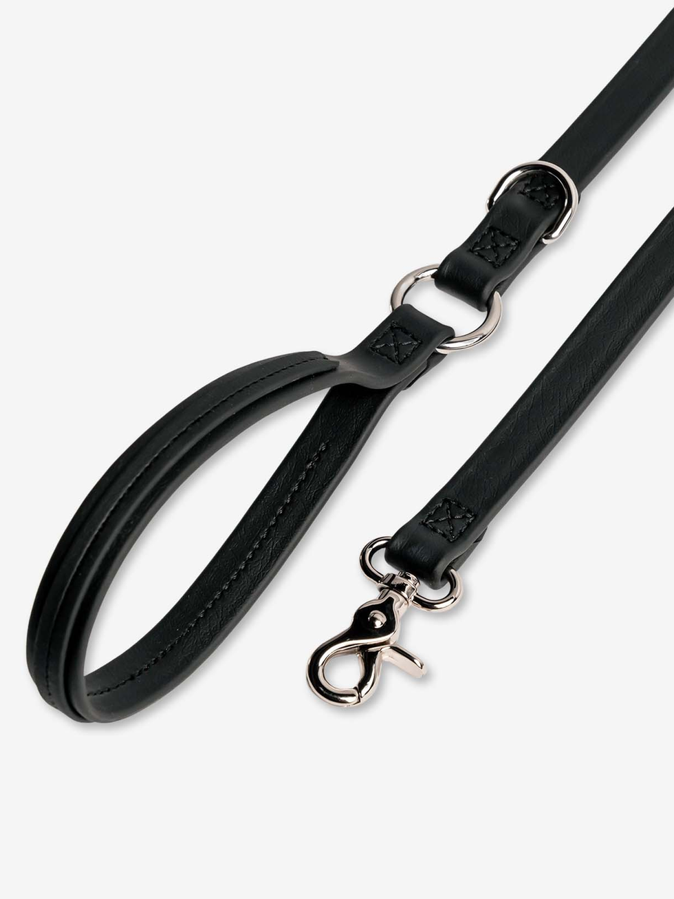 Our Jump Around leash is designed for a city & active lifestyle. This four-season leash will resist everything that comes in the way: dirt, stain, odor, and even water. Equipped with a D ring attachment to attach your essentials, Jump Around is the perfect leash for your trendy pup. Easy to use with a one-hand clasp and created with American-made Super Heavy Biothane by our expert artisans in the USA.FEATURES:Length 5 ft / 60 inches / 152 cm360 degrees rotatable claspMaintenance Free & WaterproofDoesn't absorb odorsAntiBacterial & AntiMicrobialSoft & flexible feel Beta Super Heavy BiothaneAmerican-made materials and assemblyBox stitching for lifetime durabilityThe Minimum tested pull strength is 1000 pounds per inch of widthAll of our walk accessories are Merci Collective's commitment to a more sustainable future made with 100% eco-friendly genuine Biothane and locally handcrafted in the USA.