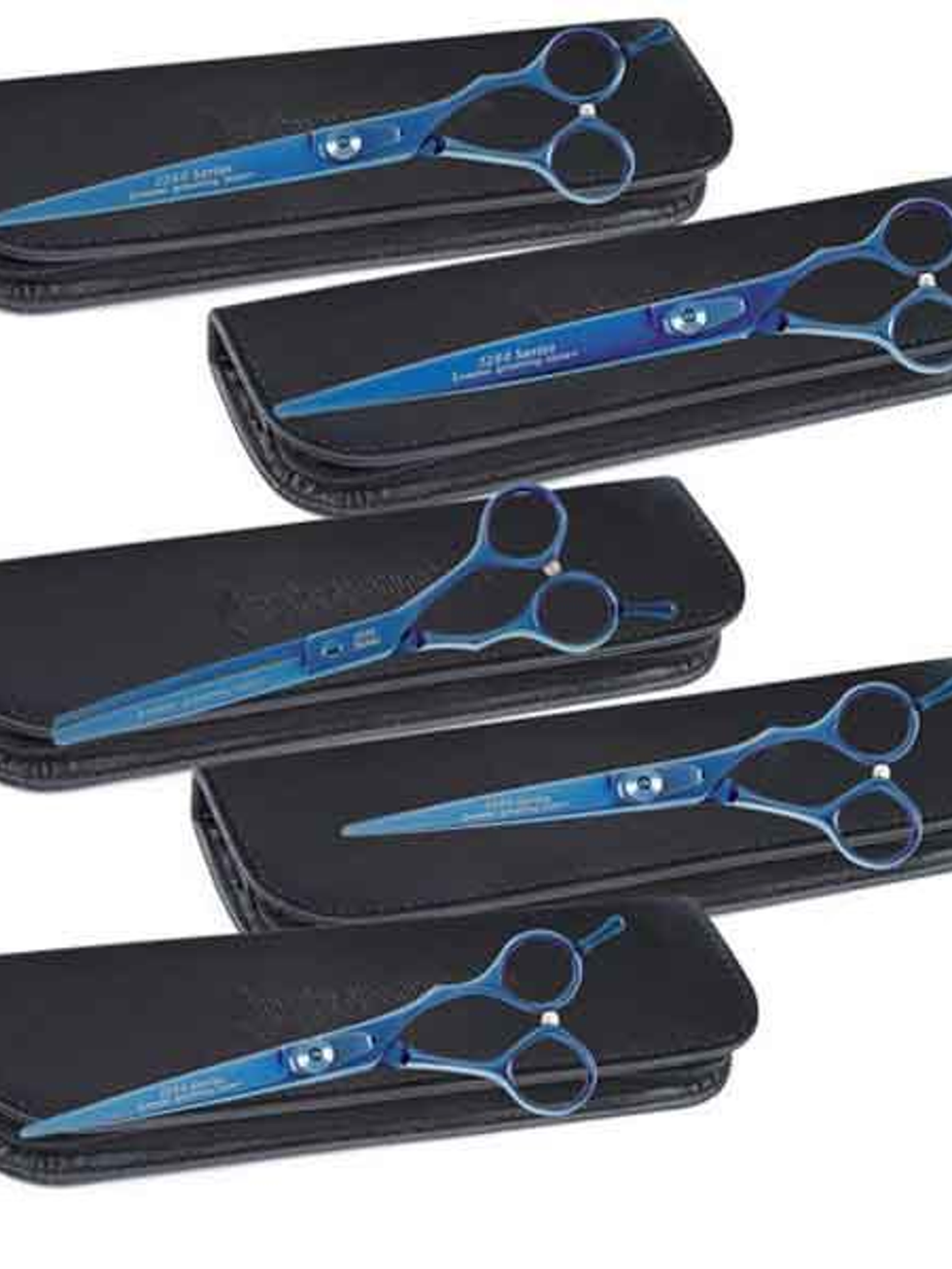 Get five dog grooming shears for one low price! The Master Grooming Tools,?? Blue Titanium Series Shear Kit includes one 6?O 7?O" and 8?O" straight shear 6?O" 42-tooth thinning shear and a 6?O" curved shear. Great quality great value.