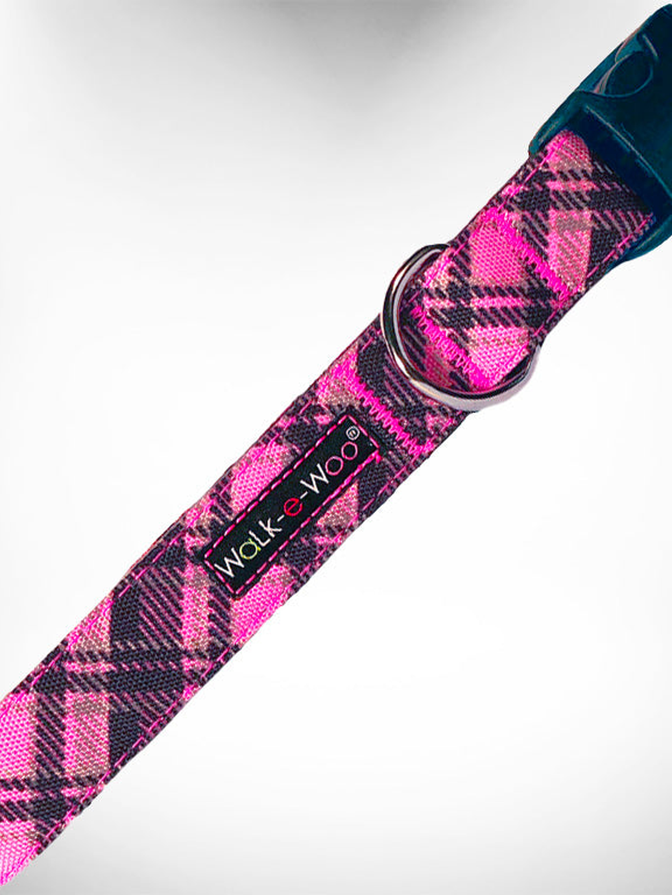 Plaid never goes out of style!We construct our collars withfour goals: performance,comfort, style and durability.Made of soft, strong, breathable nylon webbing, Walk-e-Woo's exclusive designs are printed on durable fabric that resists water and dirt. We've added contoured, quick-release buckles so your pup has extra comfort and safety whether you're out duck hunting or bargain hunting. Our extra durable reinforced nylon thread means many years of wear without wearing out, and the nickel-plated steel D-ring will proudly display your dog's credentials.Care instructions: Wipe dog collar with damp cloth for minor clean up or machine-wash in netted bag. Hang dry.Guaranteed 100%. We love dogs and want your dog to have a stylish, good fitting dog collar. Return or exchange for any reason.